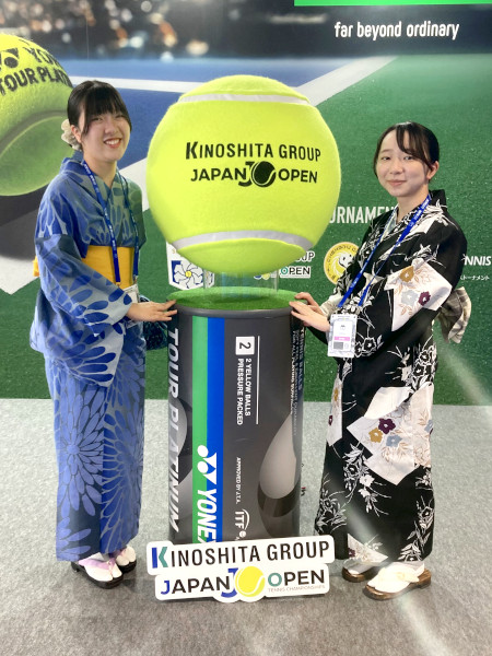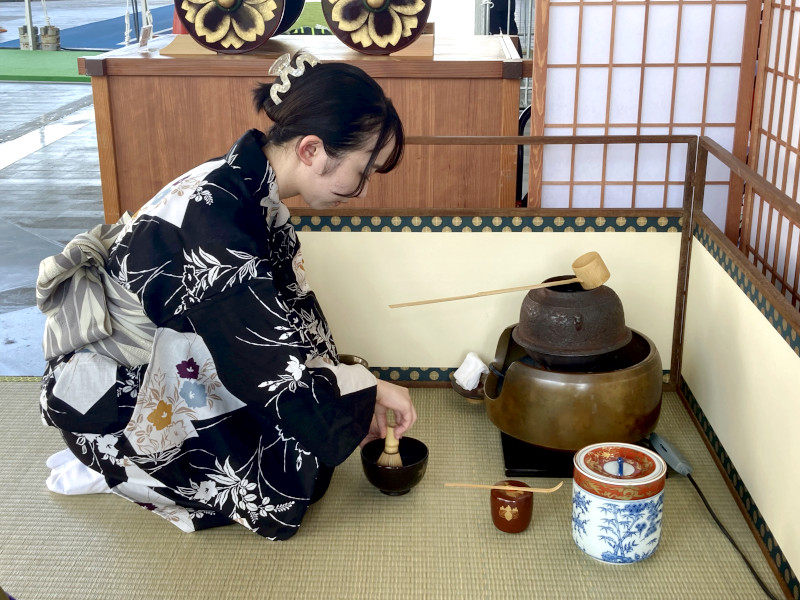 ジャパンオープンテニスの会場で、越前漆器を使った抹茶体験を実施しました。3日間にわたり、大会関係者を中心に約100人の方々がブースにお越しになり、越前漆器や抹茶を楽しんでいただきました。越前漆器についての説明は鯖江市の方がお話しされ、私たちは主に茶道に関する説明やお点前を行いました。外国人の方も多く、「matcha」という言葉が通じることに驚きながら、日本文化の魅力を直接お伝えできる貴重な機会となりました。