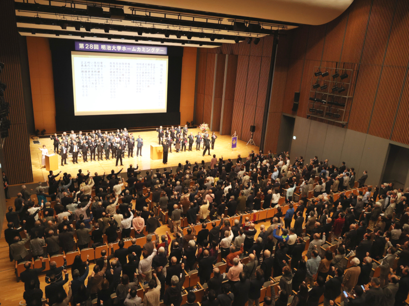 アカデミーホールで行われた記念式典では、全員が校歌を斉唱した第28回ホームカミングデーが10月26日、駿河台キャンパスで開催された。