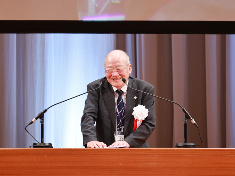 式典は、黒川寿一福井県支部副支部長による開会宣言と、稲木義幸大会実行委員長のあいさつで開幕。北野大校友会長は「北陸新幹線の延伸に合わせて開催が2年間延期された。長い準備期間で大変なご苦労があったと思う」と福井県支部の尽力をねぎらい「校友会の目的は母校の支援と校友同士の親睦。来年の徳島大会でもまた元気な姿を見せてほしい」と語りかけた。