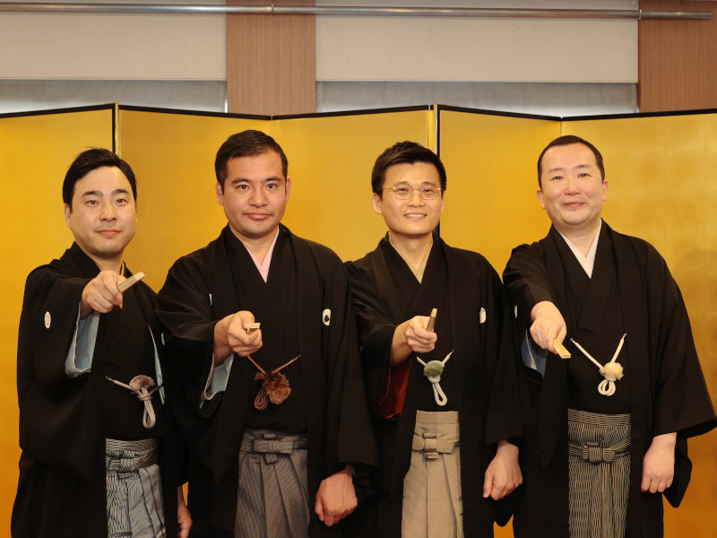 今回真打昇進となった4人。左から春風亭昇吾氏、桂竹千代氏、雷門五郎氏、昔昔亭喜太郎氏