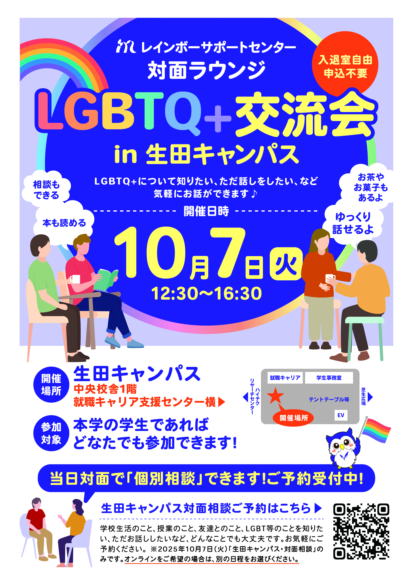 生田キャンパス「LGBTQ+交流会」(対面ラウンジ)・個別相談│レインボーサポートセンター