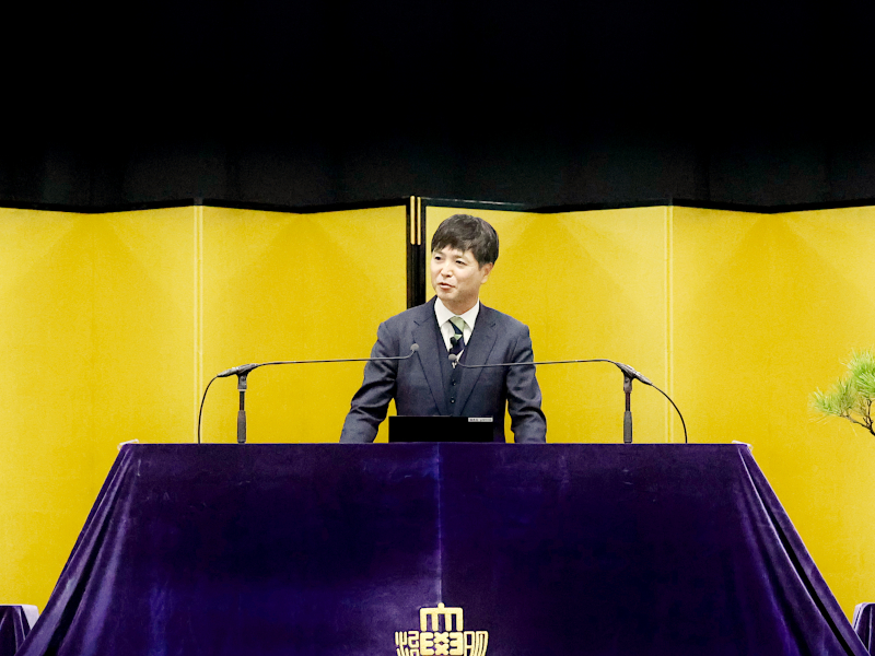 祝辞を述べる柳谷理事長山本連合父母会長は、「明治大学での学びを通じて、多くの出会いと挑戦を経験し、それぞれの夢と可能性を大きく広げていかれることを心より願っている」と述べた。