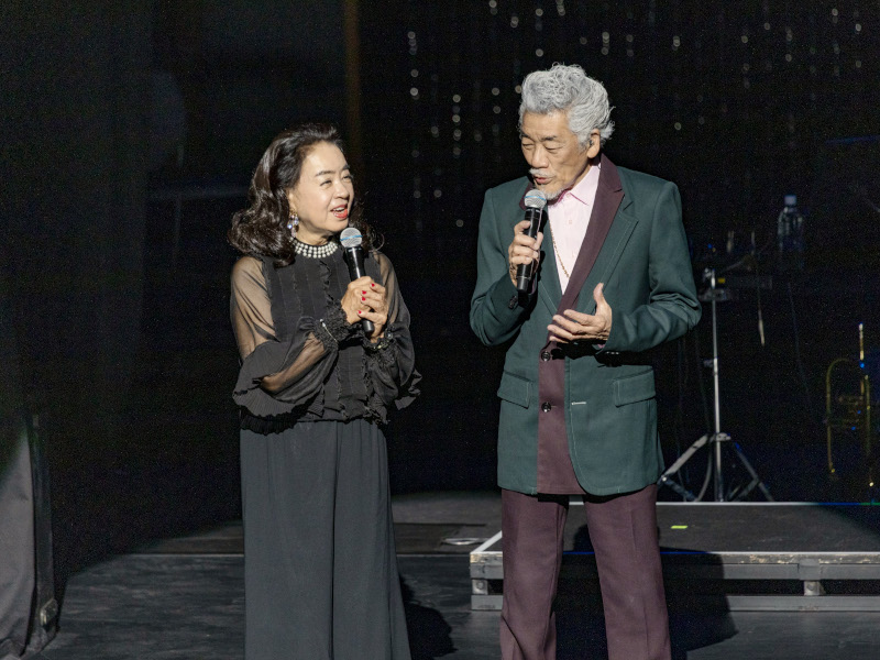 総合プロデューサーの宇崎氏(右)と総合司会を務めた阿木氏