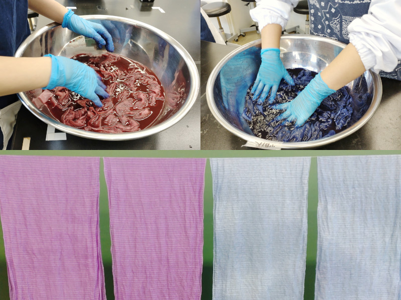 媒染剤を変えた2種類の紫根染