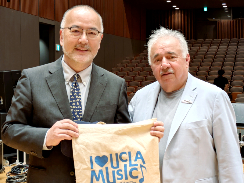 (左から)上野正雄学長とUCLAのスティーブン・ロサ教授主な出演者