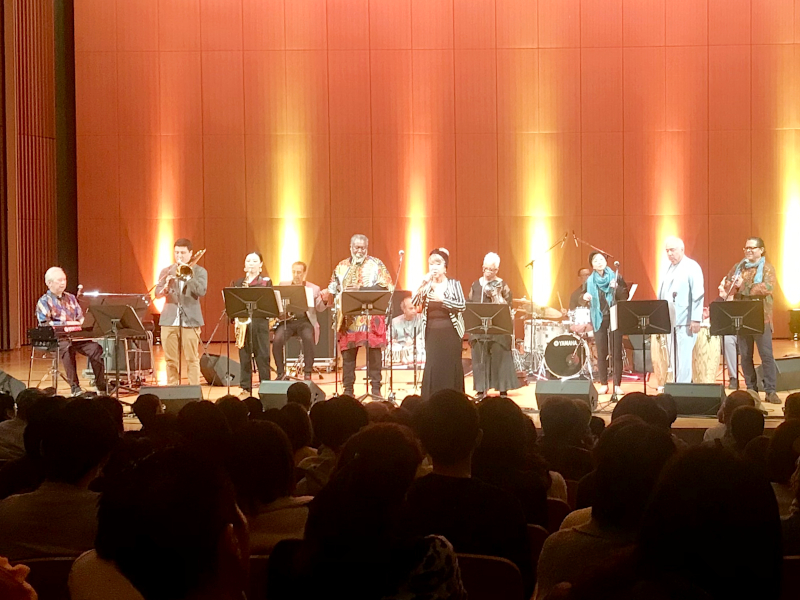 公演中の様子来場者は、UCLA Latin World Music Ensembleによるドラムや打楽器(タブラやコンガ)の躍動感あふれる演奏やラテンジャズ・ヴァイオリンの音色やリズムを楽しんだ。