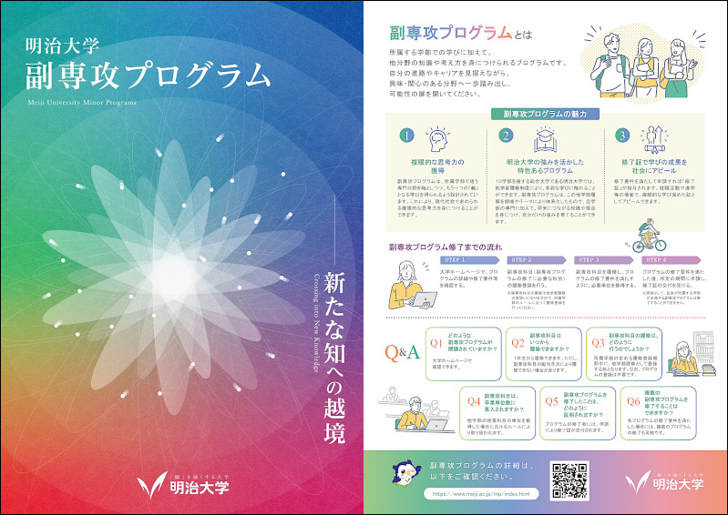 明治大学は2026年4月から、新たに「副専攻プログラム」を導入する。これは全学部・全学年を対象に、所属学部を越えた領域の学びを提供する制度。本学の総合性と多様性を生かし、学生の幅広い学問的視野や問題発見能力、複眼的な思考力を養い、複雑化する社会課題に向き合う力を育むことをねらいとしている。学生は、特定の領域やテーマに沿って編成されたプログラムを通じ、専門分野を軸としつつ「もう一つの軸」となる学びを得られる。