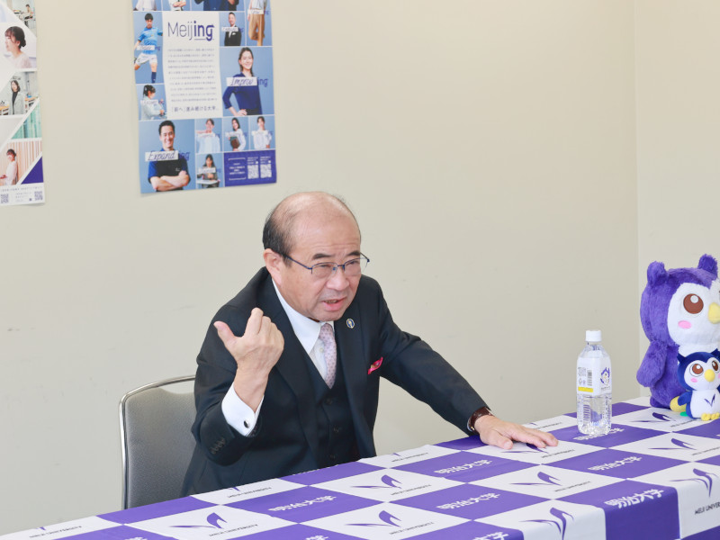 これからの時代は、高い専門性を持った際立った「個」が、ネットワークでつながり、一つのものが創造されなければいけません。こういうことを学べる環境が、伝統的な学風として明治大学にはあります。校歌を歌うことで、一つになれる、「個の独立・群の創造」を地で行っている稀有な大学だと思いますので、その環境や伝統を思いきり享受して、たくさんの経験をしてほしい。それが、将来につながるということを、強くお伝えしたいですね。