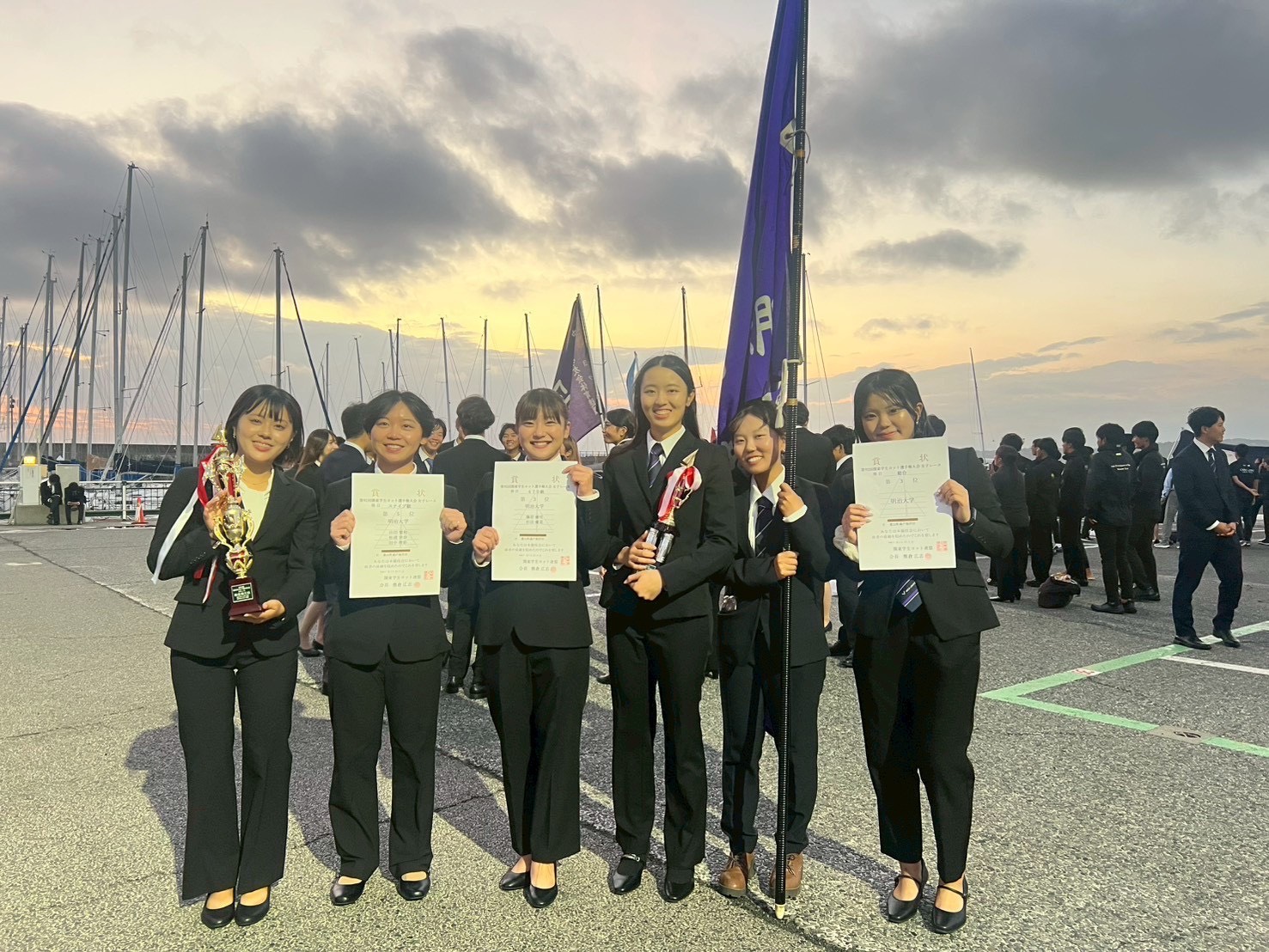 ”Be a stunner” ― 観る人も関わる人も魅了する圧倒的なチームであれ ― “Stunner”とは、ただ勝つ者ではない。見た人の心を奪い、息をのませ、記憶に刻まれる存在のこと。 勝敗の先にある「感動」を生み出す力。 それは、誰かのために全力を尽くす姿勢、 苦しさの中でも前を向き、仲間を信じ抜く心から生まれる。 強さとは、速さでも、力でもない。自分を律し、仲間を想い、チームのためにすべてを懸けること。 その積み重ねがやがて一体となり、輝きとなる。 私たちは、その光で私たちを見る全ての人の心を動かせるチームを目指す。見る人の胸を震わせ、 明治という名を誇りに変えられるように。 Be a stunner. 誰が見ても心を奪われる、 強く、美しく、そして人の心を照らす。そんな明治大学体育会ヨット部を、私たちは創っていく。